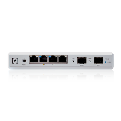 Diseñado para un máximo rendimiento, Route10 incluye cuatro puertos Ethernet con detección automática que admiten conexiones Ethernet de hasta 2,5 Gbps (10/100/1000/2500 Mbps).